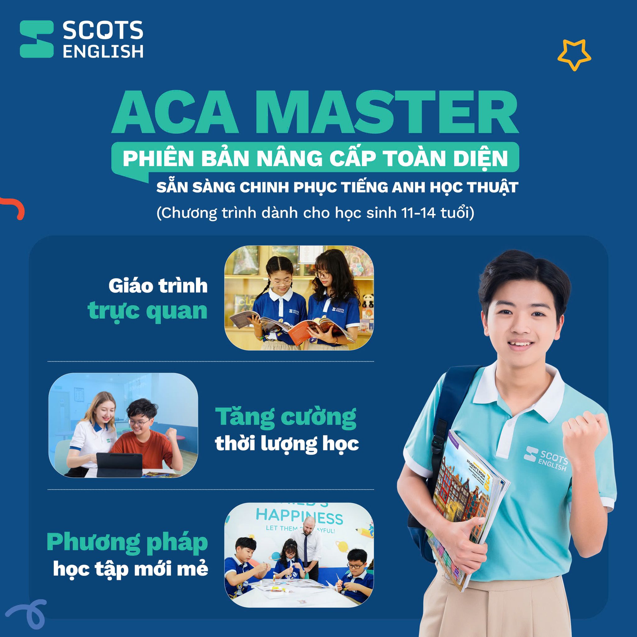 Tại Scots English, chúng tôi đồng hành cùng học viên trong hành trình nuôi dưỡng khát vọng, phát triển trí tuệ, rèn giũa nhân cách và bồi dưỡng tài năng, giúp các em xây dựng nền tảng vững chắc cho thành công và một cuộc sống ý nghĩa. Đó cũng là cách chúng tôi góp phần kiến tạo một thế hệ trẻ Việt Nam hạnh phúc, tự tin và chung tay xây dựng đất nước hùng cường, thịnh vượng.